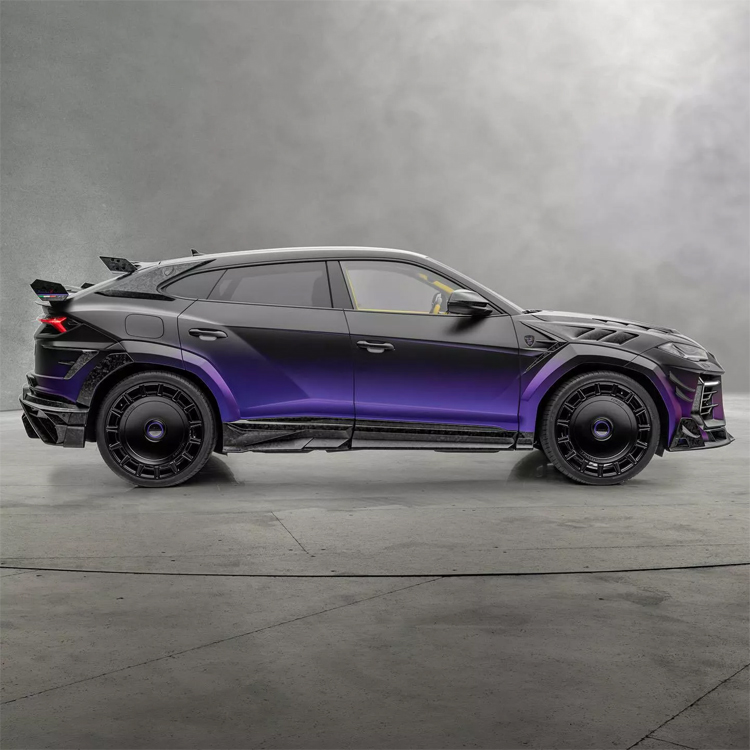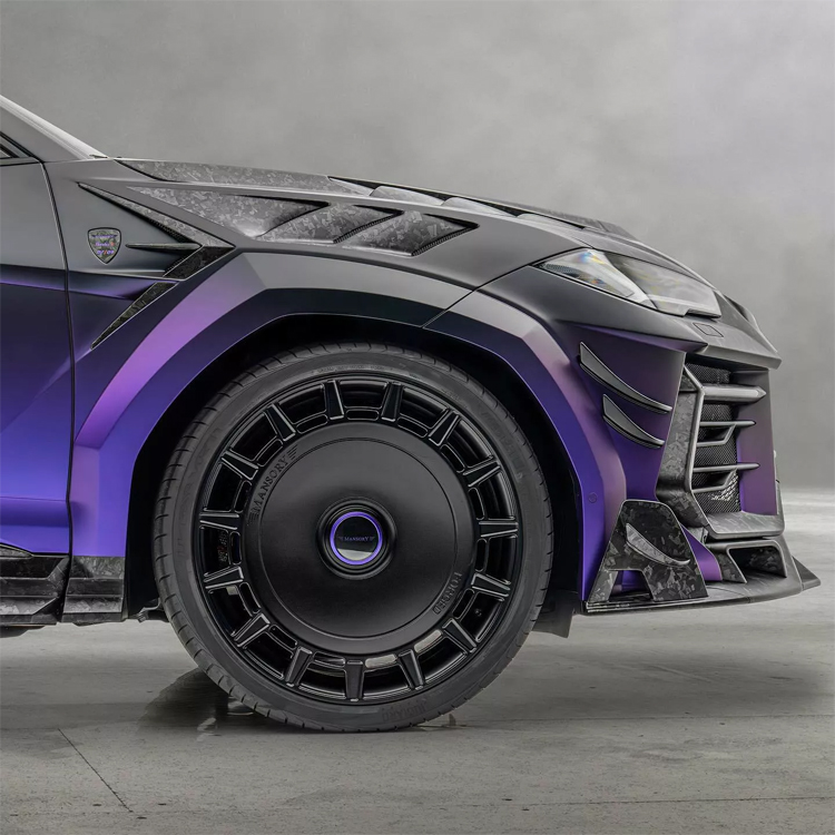 Mansory針對Urus進行視覺上的進化,手法非常大膽。車輛前半段採用非常多的鍛造碳纖維零件,包括前保險桿、引擎蓋和葉子板;前保險桿的造型比起原廠多了非常多格柵,看起來非常複雜。頭燈造型維持原廠,下方增加LED日行燈,燈的線條與頭燈內部的光源相同,有著無法認錯的品牌形象。
