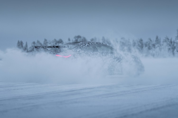 這輛雙門跑車目前正在瑞典進行寒帶氣候測試。車身覆蓋著緊密貼合的偽裝彩繪,但仍無法完全遮掩其寬大的下方進氣口,以及車尾誇張的大型尾翼。此外,從外觀比例來看,該車似乎也擁有更寬的輪距設定。