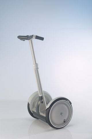 看過馬戲團騎獨輪車的表演嗎?只要經過平衡感訓練,人類可以運用雙腳以及身體的重心變換,巧妙地控制獨輪車,做出令人驚歎的特技表演。如今科技的進步讓你也能輕易地成為行走的魔法師∼Segway Human Transporter只使用兩個輪子,便能直挺挺地立在原地而不倒,你只需站在上面,扶著把手,運用你的直覺,便可前進、後退甚至員地迴轉,就像自己的雙腳一樣操作自如!