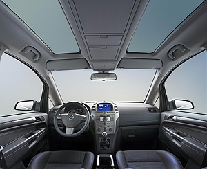 ![]() 除了靈活應用的車室空間,真正襯托全新OPEL Zafira與眾不同魅力的是,獨一無二的「Panoramic Roof全景式玻璃車頂」。在強化車身剛性的前提下,巧妙地將一般休旅車毫無變化的車頂,轉變成四塊獨立透明的採光區域,讓OPEL Zafira的每位乘客,都隨時擁有最精彩的天空!更重要的是,配合全景式玻璃車頂設計,OPEL Zafira的車頂外觀,也呈現出兩道立體深潛的曲線,在視覺上不僅與充滿科技氣息的車頭造型連成一氣,更形成空氣力學上的導流帶,讓OPEL Zafira的動態行駛,更為順暢與寧靜。