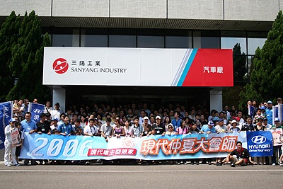 熱~!熱~!熱~!天氣熱,不過現代汽車可愛的車主熱情更熱;2006年現代車主回娘家活動,在6月24日(六)藉由參觀三陽工業新豐汽機車製造廠及新竹安全駕駛訓練中心的相關精彩行程,而讓整個現代汽車仲夏大會師隨著可愛車主們滿滿的熱情,非常圓滿的進行。