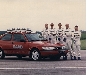 “Saab性能表演”始於1987年,為慶祝SAAB成立50週年而舉行,首次表演地點是在SAAB-SCANIA集團總公司所在位置,瑞典的Linkoping。Mr. Saab -- Erik Carlsson與其他小組成員,只有兩個月的準備時間。他們日以繼夜的練習,終於呈現給觀眾最完美的演出,而1994、95兩年在台灣北部龍潭舉行的表演,吸引了數萬觀眾,是最成功的一次演出。