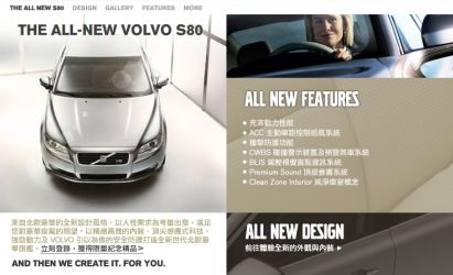 眾所矚目的VOLVO全新世代頂級旗艦房車-THE ALL-NEW VOLVO S80即將於十月份在台發表,為了讓所有喜愛VOLVO的車迷朋友們能預先品味THE ALL-NEW VOLVO S80的北歐斯堪地那維亞的人性豪華,台灣富豪汽車特別成立THE ALL-NEW VOLVO S80專屬中文網站http://s80.volvoclub.com.tw。喜愛VOLVO的朋友們不僅能在活動網站中一賭THE ALL-NEW VOLVO S80獨創的尖端科技、動力表現和高規格配備外,更可於線上搶先觀賞THE ALL-NEW VOLVO S80獨家電影短片和下載電腦桌布,只要於10/15前登入網站的朋友們,即有機會獲得THE ALL-NEW VOLVO S80紀念限量別冊和VOLVO精品,搶先感受THE ALL-NEW VOLVO S80動感的獨特魅力。 另外,甫於年初台北車展大放異彩的ALL-NEW VOLVO C70電動硬頂敞篷轎跑車,自發表以來即獲得各界好評,其典雅迷人的時尚外型和演繹完美敞篷的造車工藝更是令人傾心不已,ALL-NEW VOLVO C70為限量珍貴車款,為了讓更多喜愛VOLVO的朋友能一窺其優美丰姿,只要登入其專屬中文網站http://c70.volvoclub.com.tw,啟動操作指令,即可於線上欣賞ALL-NEW VOLVO C70電動硬頂的開篷和關篷的視覺饗宴,即日起至10/31止,只要登入活動網站,還有機會獲得限量ALL-NEW VOLVO C70模型車、精美海報和VOLVO限量精品。