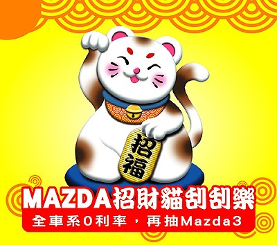 為慶祝MAZDA銷售市佔率持續成長,MAZDA Taiwan特地於10月7日至11月底,推出「MAZDA招財貓刮刮樂」的活動。在這段期間消費者只要到MAZDA展示中心填寫資料卡,即可獲得刮刮卡一張,馬上刮馬上中。除了ASUS筆記型電腦、Nikon數位相機、iPod shuffle隨身聽及MAZDA模型車等大獎,參加試駕活動者更有機會抽中屢獲國內外肯定的節能環保房車Mazda3 1.6 Luxury。