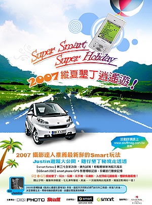 此次兩天一夜的「縱夏墾丁逍遙遊」是由smart與暢銷雜誌《Stuff》、《DIGIPHOTO》,以及獲得日本Gmark設計大賞的智慧型手機集嘉通訊"共同舉辦,將在人氣攝影達人-「我的心遺留在愛琴海」作者Justin的帶領下,嘗試新鮮玩法,體驗墾丁另類風情。