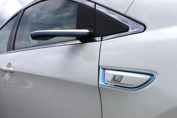 先把F開頭或是奸商等形容詞吞回去,沒有的原因不是車商省成本,是因為現行法規就是規定要有後照鏡,雖然差一個字,但多了個頭字意思差很多,後照鏡不等於後照鏡頭,因此這配備確定是沒有的。 此外一些藍色光條的設計也由於法令對燈組與燈殼的規定,基本上在市售時也不會是這般模樣。這些其實上監理所網站在對照一下之後基本上你也可以推斷出這些結論。不過媒體總是要問點有深度的,因此我們也確定由於電動車與汽油車引擎本體構造上的差異,因此畫面中看到的水箱護罩無法通用在油車上,因此這部份也會有所修改。此外外觀酷似渦輪葉片的19吋輪圈因成本考量所以實際上市時有可能會以17吋的模樣上市。