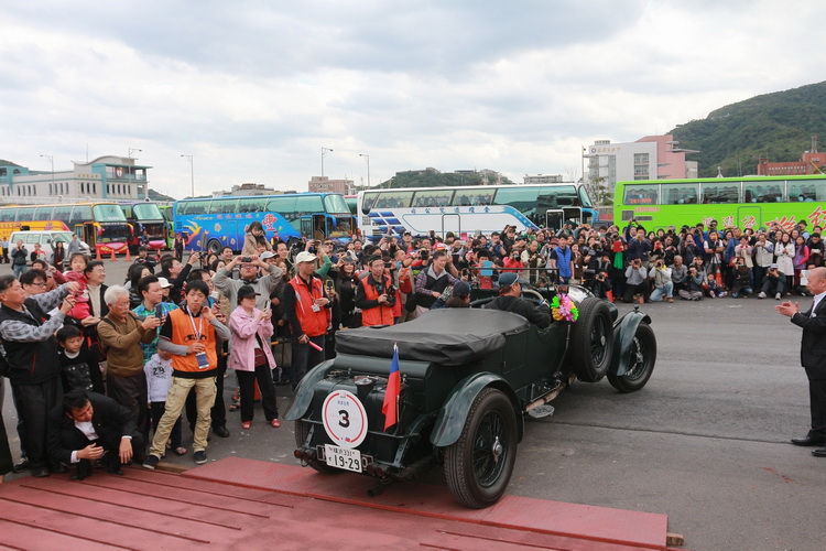 ▲從蘇澳港下船後,每一輛古董車都受到熱烈的歡迎與加油。