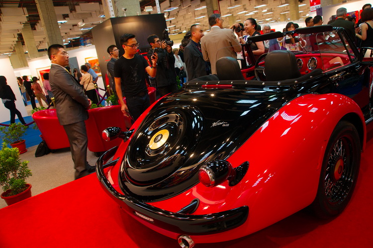 第四屆台北新藝術博覽會(Art Revolution Taipei 2014) 4月17日至20日將在台北世貿三館登場。本屆除了展出48國、280位藝術家、2,000件展覽作品外,最大的亮點之一,就是台灣藝術家李善單教授與全球頂級豪華轎跑車廠商DiMora(迪摩拉汽車公司,有美國的「勞斯萊斯」之稱)跨界合作的藝術超跑。這台價值不斐、手工打造的「新古典藝術超跑」,是全亞洲藝術家與國際古典超跑跨界合作的首例!並特別選擇在台灣舉行新車全球首展。超跑與當代藝術融為一體,展現極速之美的藝術珍藏,引發各界震撼。