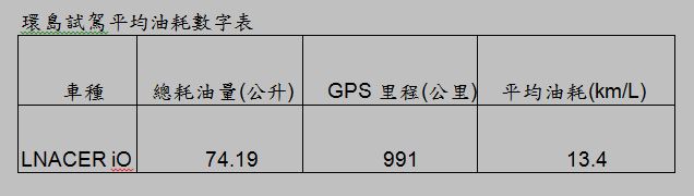 ![]() 整個環島為期三天,第一天為山海路線,自新店出發,以順時針方向繞行台灣,途經雪隧→宜蘭→蘇花公路至花蓮七星潭,網友對於LANCER iO底盤懸吊設定大表肯定,前後獨立懸吊(附防傾桿)在山路時有效抑制側傾,過彎穩定,與行車舒適性取得不錯的平衡。第二天由花蓮前往高雄,途經花蓮緩慢民宿→台東大武彩虹村→南迴公路→屏東大鵬灣,最後行經台17線落腳高雄市。第三天主要為高速行程,由高雄國道一號轉國道三號→古坑綠色隧道→抵達新店結束此趟試駕之旅,網友對於LANCER iO 的高速穩定性表示滿意,後座乘坐空間寬敞舒適,非常適合長途巡航。