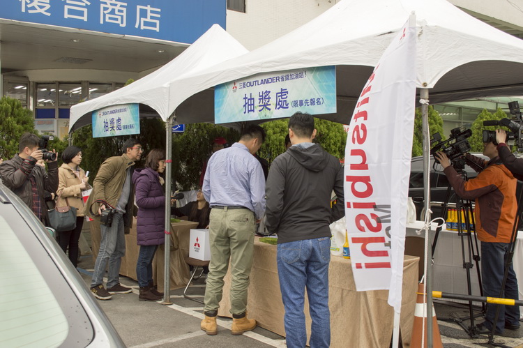 ![]() 這項活動於2月4日在中油內湖站舉行,邀請一百位車主開著愛車至活動會場把油箱加滿,體驗如果換算成開Outlander/Outlander PHEV可以省下多少錢,再憑手氣取得3折或85折的加油折扣金,現場折扣分別象徵Outlander PHEV與Outlander的省油表現。車廠表示,由於Outlander PHEV平均油耗測試值為54.6km/l,約同級車三倍,所以加油每公升油價打3折,而Outlander的油耗值約為同級車的1.15倍,所以加油每公升打85折。折扣後價差由中華三菱負擔,也讓參加活動的車主大呼划算,紛紛表示有賺到了的幸福感。