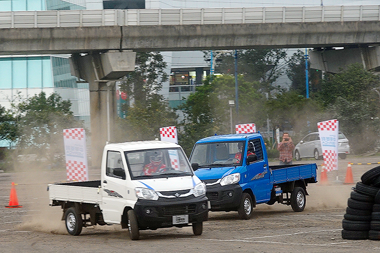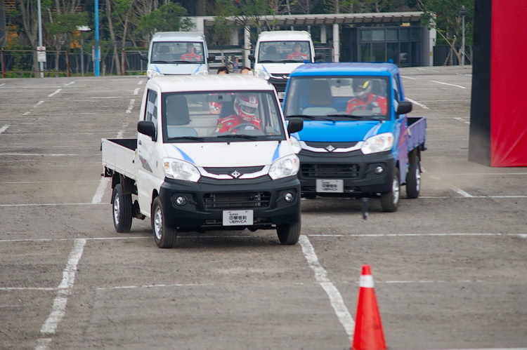 無論是S型接龍或讓全場氣氛沸騰到頂點的衝刺甩尾,急速倒車前進,都展現出中華菱利在操控上的實力,藉由車身獨特強化處理、荷重感知閥自動控制液厭,空載不偏滑,重載煞得住,讓車身激烈操駕時不易變形;前麥花臣後車軸式葉片彈簧的懸吊系統設計、前中門防撞剛樑,強化了剛性,減少懸吊變形且確保輪胎的循跡表現,順利完成高速對開閃避的刺激表演,讓中華菱利能以極佳的操控性,完美呈現其優異的性能本質。