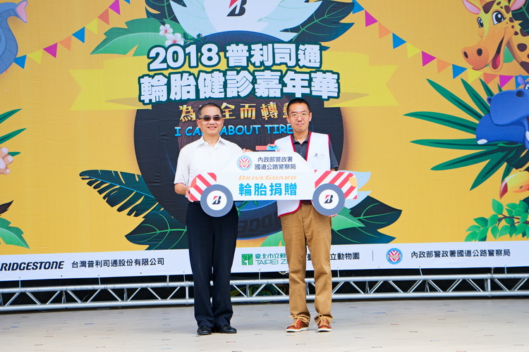 ![]() ▲(由左至右)癌症希望基金會 董事長 王正旭、內政部警政署國道公路警察局 副局長 高建源、台灣普利司通 總經理 富澤薫、臺北市立動物園 園長 金仕謙普利司通不僅堅持守護民眾的行車安全,也期盼提升警察值勤時的保障,特捐贈內政部警政署國道公路警察局公路車用Driveguard失壓續跑胎150條。這款輪胎如因意外而失壓時,仍能在零胎壓狀態下以80公里時速行駛80公里的距離。