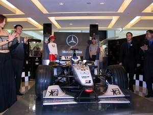 ![]() 感受到台灣賽車迷對朋馳-麥拉崙車隊的支持,總代理中華賓士也在去年正式成立賽車俱樂部,結合國內賽車同好,同時也進一步提倡正當的運動風氣。賽車俱樂部成立至今,籌辦過無數會員活動皆獲得車迷熱烈的回應,因此為回饋國內車迷,中華賓士特將Mika Hakkinen於2000年所駕駛的MP4-15引進至台灣,讓更多人能體驗當年Mika Hakkinen馳騁沙場的風采。此外,中華賓士也相當希望藉由此次在微風廣場的展出,能吸引更多熱愛賽車的車迷加入俱樂部,一同分享一級方程式賽車的熱情。
