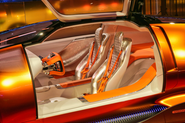 第一眼看到 Vision One-Eleven 將被其大膽的古銅橘色塗裝,與低伏且飽滿的肌理線條的 One-Bow 設計吸引,而這流線的外型並不是空穴來風,是採用 Mercedes-Benz 先進數位化工程技術產生,將空氣有效的引導到車身各處,減少阻力和提高穩定性。