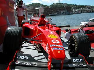 六月二十八日下午,在北台灣基隆港區的基港大樓前廣場,一輛擁有輝煌戰績的Ferrari F1賽車,在熱力四射的氣氛下抵台,同時在三輛包括Ferrari 355、360等超級跑車的開道下,紅色風暴正式襲台!