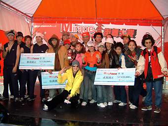 Mirage盃街舞大賽全國總決賽,在12月12日於台北京華城舉行,來自全國北、中、南各地入選5組隊伍,個個舞技精湛,使會場歡呼驚嘆聲連連,雖然天空飄著雨競賽絲毫不受活動現場雨勢影響。總冠軍由北區福臨門奪得,亞軍中區的黑角團,季軍北區大飛醒獅團..呱呱,競賽結束後,由中油潤滑油事業部執行長閻澄頒獎,總獎金10萬元,讓獲選隊伍欣喜若狂。
