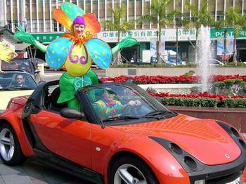 ![]() 不管是車迷還是熱愛花卉園藝的民眾,只要蒞臨位於台中大坑的亞哥花園,參加目的在於推廣花卉種植及台中觀光產業的「花與樹博覽會」,在每日下午三點,由主辦單位特別遠從白俄羅斯邀請來台的美麗舞者所化身的花精靈,與smart車款共同展開花精靈專車遊園活動,身著雙色炫麗外表的roadster與fortwo會陪同花精靈於沿途發送魔力糖果給遊園民眾,並隨時接受遊客合影留念。Roadster與fortwo 時尚炫麗的外觀,讓遊客都驚豔不已,頻頻詢問產品內容及資訊,更為這次的花與樹博覽會,帶來不少驚奇。