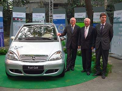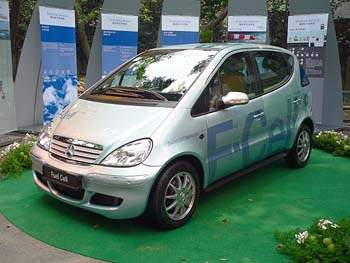 ![]() 自2002年開始已有三十部採用燃料電池的戴姆勒克萊斯勒的CITARO市區巴士為歐洲十家公共運輸業者提供車隊服務,另外自2004年起另有三部燃料電池巴士在西澳的伯斯市服役。此外,戴姆勒克萊斯勒於2004年起與中國大陸的研究發展部簽約,準備在今年運交多部CITARO型燃料電池市區巴士,在北京市區行駛。在今年的日內瓦車展中,戴姆勒克萊斯勒更展出新Mercedes-Benz B-Class “F-Cell”,將燃料電池動力延續至sports tourer運動休閒車種上,更將燃料電池動力實用化推向更寬廣的領域。