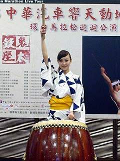當代指揮大師卡拉揚讚譽:「鬼太鼓座開時代之先聲,化鼓為道,化道為鼓,奏出的鼓樂撼人心弦!」由中華汽車主辦的【2005中華汽車響天動地音樂之夜-環台馬拉松巡迴公演】,將邀請風靡全球的日本國寶級藝術團體鬼太鼓座來台演出,在力與美的結合下,用音樂的形式將東方文化精氣神的表現做最極致的詮譯。素以勇於突破、顛覆傳統風格贏得世界媒體與樂迷讚賞的「鬼太鼓座」,將於4/8~6/15來台演出,停留兩個多月期間,除了進行10場全省巡迴公演外,更將以台北中正紀念堂廣場為起點,每天以30公里的速度、馬拉松的形式,沿著西濱公路、南橫公路等路段,以一個半月的時間跑完全台灣。為了迎接鬼太鼓座的成員抵台,中華汽車特別請到以模仿安室奈美惠聞名的標準哈日藝人丁小芹擔任親善大使,在4月7日先一步進行太鼓演出,並以「侯主播特有的微笑」代表中華汽車揭開這場結合「奔跑」與「音樂」的藝術饗宴。