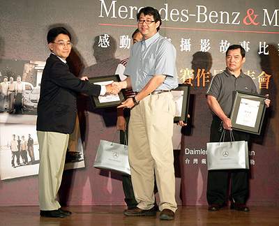 由台灣戴姆勒克萊斯勒主辦的「MERCEDES BENZ & Me 感動紀實攝影故事比賽」5月26日下午於市長官邸藝文沙龍圓滿落幕。在各界踴躍參與下,活動自3月17日開始至5月9日截止,總共接獲超過76件優秀作品與動人故事。本活動的評選過程由專業評審團包括知名導演柯一正先生、攝影師齊柏林先生、GQ總編輯杜祖業先生以及行銷企劃部MERCEDES BENZ品牌經理邱志鴻先生進行評選,選出12名優勝參賽作品。前三名得獎名單於今日記者會中正式宣布,得獎者並分享照片的心情故事。