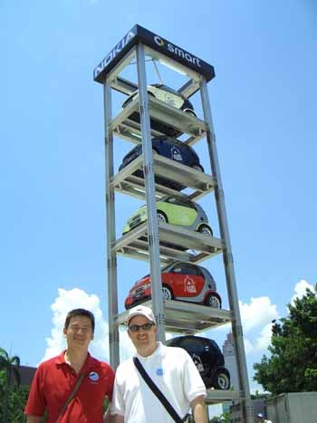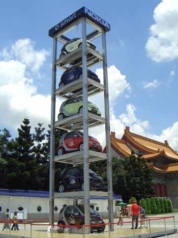 一向主張年輕創新的smart品牌,除了提供一部fortwo做為活動壓軸─抽獎活動的大獎,另外並將於現場搭建自從smart品牌推出之後即引起全球車迷及建築與設計界熱烈討論的smart車塔!首度出現在台北的smart車塔,是smart獨特濃厚的藝術及設計色彩之品牌精神的體現!這一座高14公尺、重13公噸、並載負六部fortwo的金屬車塔創造了一個獨特的創意境界,提供車迷高度的想像空間與生活趣味!車塔聳立於中正紀念堂大中至正門口,歡迎車迷前來熱鬧觀賞!