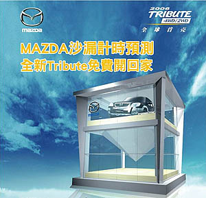 直接撥0800-000-770 就有機會免費入主全新MAZDA Tribute以日式精緻人文精神受到消費者信賴的MAZDA,自推出MAZDA Tribute後即深受市場肯定,而此次全球首賣的2006 MAZDA Tribute更將全面搶佔SUV市場,尤其在2.3L 2WD到位的情況下,提供消費者更精緻而全方位的產品風貌,此次全新2006 MAZDA Tribute在全球首賣的威力之下,透過極具創意的戶外大型Tribute沙漏,邀請消費者一同見證全新2006 MAZDA Tribute所帶來的勁能魅力,請即親臨全省MAZDA展示中心或直接撥0800-000-770免費預約專線安排試駕,就有機會免費獲得全新MAZDA Tribute,收件期間自4月8日起至23日晚間六點截止,預定4月底在會計師見證之下公佈得獎者,並擇期舉辦公開贈車儀式,只要精確預測就有機會成為日式優質運動休旅車的尊榮車主,機會難得請即把握!