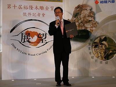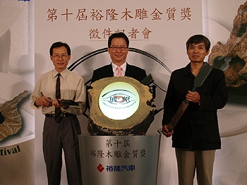▲裕隆汽車總經理陳國榮表示,將透過每年的「裕隆木雕金質獎」活動及木雕藝術專刊持續推廣國內木雕藝術。本屆「裕隆木雕金質獎」的徵件日期自即日起至95年8月18日止,為期三個月,預計選出金質獎、銀質獎、銅質獎各乙名,可分別獲得80萬元、50萬元及30萬元的高額獎金,同時將選出優選七名,每名可獲得5萬元獎金。特別一提的是,本屆「裕隆木雕金質獎」特別增設「校園新人獎」,希望鼓勵青年學子一同加入木雕藝術的創作行列,為傳統的木雕藝術激盪出新風貌與新氣象;「校園新人獎」將選出三個名額,第一名可獲得5萬元獎金,第二名3萬元,第三名1萬5仟元,總計本屆「裕隆木雕金質獎」裕隆汽車共將提撥獎金達204.5萬元。