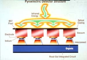 紅外線感應器鏡頭是將紅外線能量像攝影機一樣顯像於一英吋的紅外線感光電極板上,紅外線的影像會顯像在由寬320點、高240點的非冷卻焦電型熱影像電極所作成之紅外線感應器上。紅外線感應器會因為對象物體所放射出的熱能產生反應,依據所接收之紅外線光量比例多寡來儲存靜電。在影像電極板前方設置旋轉斬光盤(Chopper Disc),偵測對象物體是否有放射熱能,並將熱能轉換為影像。旋轉斬光盤並且會與熱源影像電極的讀取速度同步旋轉。各畫素會隨時檢查靜電容量並輸出單色的影像訊號。此影像會被送至抬頭顯示器,讓駕駛者可以看見所產生之影像。