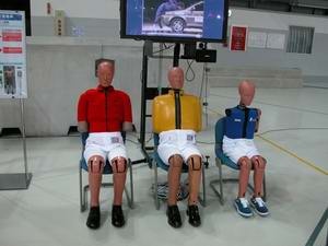 ![]() ▲新世代的造車理念需要兼顧行人的安全,這是HONDA Polar II假人家族,同時扮演車內成員與模擬行人的雙重角色。事實上筆者已經第二次造訪這個實車撞擊測試場,上一次是2000年底,第一次目睹Civic Ferio與Legend對撞,這一次看到的是小車Fit與Legend對撞的測試,雖然第二次看到,仍舊感到強大的震撼力,現場的實況請參閱本期的VCD,重點在撞擊之後,小車子能不能順利地打開車門,車室空間的變形情況如何,這點請看圖片以及影片,很容易明瞭的。