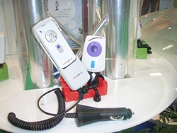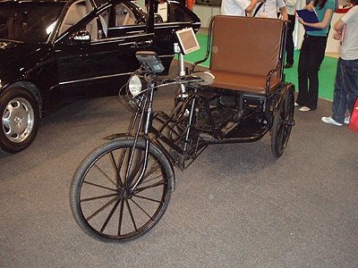 ▲【這部車用電腦廠商報價約98元美金。(僅主機報價,不含安裝及週邊配備)】這次展覽裡大多以汽車電子零件、模具、自動化機具、汽車傳動及底盤系統為主,所佔這次展覽攤位比例中較多數,除此之外,針對汽車專用導航系統、行動通訊系統、影音系統及行車電腦....等,也加入了不少廠商參展;其中以一部已有50多年歷史的三輪車,上面還裝載電腦、螢幕、音響、滑鼠,不僅可撥放音樂還可撥接上網,最引人注目,開發業者係國內知名之汽機車防盜鎖公司--「愛鎖安全科技有限公司」,由國內中央大學開鎖教官謝文苑先生擔任技術總監,開發這款無風扇無散熱片,可奈溫-20~80度並高度防震的汽車專用電腦,無論在車上上網、多媒體娛樂、衛星導航、視訊、網路電話....等,讓每部汽車能夠---車外跑馬路,車內跑網路,成為真正的「網路車」。