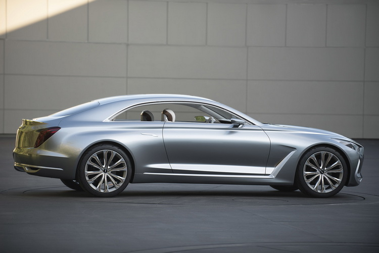 長車頭、短車尾的車身比例、位置拉高的車身與獨特無中柱的車窗輪廓,配合俐落乾脆的線條與帶有肌肉感的鈑件弧度,展現出具有霸氣的豪華與動感。Vision Coupe G動力上搭載了在旗艦房車Equus與高級房車Genesis Sedan身上可看到的5.0升排氣量V8自然進氣汽油引擎,可輸出420hp/6000rpm最大馬力與53kgm/5000rpm最大扭力。