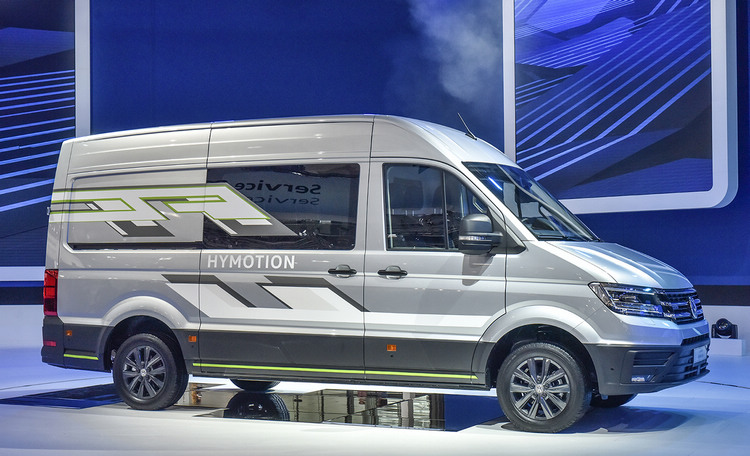 Crafter HyMotion:氫燃料電動概念車![]() ▲Crafter HyMotion概念車採用氫燃料電池。繼e-Crafter純電商業車,今年福斯商旅主舞台上更全球首發e-Crafter HyMotion氫燃料電池概念車,是一款3.5噸電動車,其能量由燃料電池供電。它的4.2公斤氫氣罐總共可以達到350公里;而7.5公斤氫氣罐總行駛里程則可高達500公里。