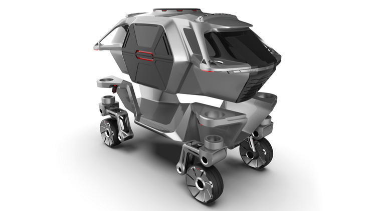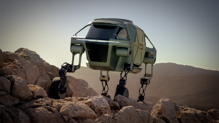 此外,因為採用了模組化的電動車底盤架構,Elevate還可以依據不同的狀況、任務需求轉換成不同的車體形式。而機器腿上的車輪裡則內藏輪內馬達來驅動,四個車輪可以朝著所有方向自由移動。或是將機械腿折疊起來,車子就可以在高速道路上跟一般車輛一樣快速行駛。而在步行與攀爬的能力上,則可以讓車內乘客在保持水平的乘坐姿勢下來攀爬5英尺高的牆壁、跨越寬達5英尺的溝壑,在各種地形上步行穿越。