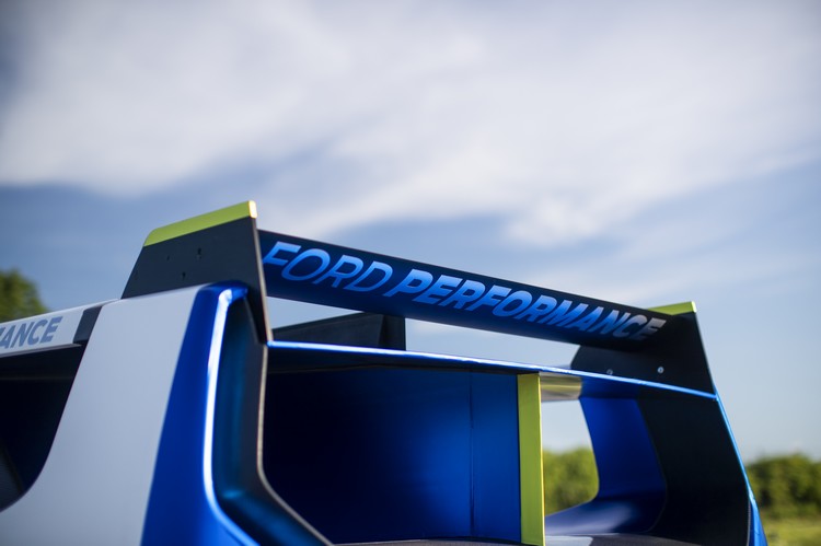 ![]() 車內搭載Ford自行開發的水冷式50kWh電池組,安裝位置並考量最佳車身配重及低重心,根據原廠說法,透過標準快充設備大約45分鐘可以充滿,車內觸控螢幕也會顯示充電狀況。四組馬達負責驅動四個車輪,合計約可爆發2000ps馬力輸出,足以供應2秒內完成0-100km/h加速所需動能,使其成為Ford有史以來最強的SuperVan。