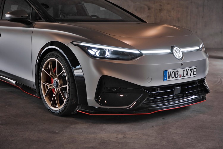 這部用以展示MEB電動車專用模組化平台潛力的概念車是以ID.7為基礎所打造,這部純電大型豪華房車外觀上有著獨特的氣質與動態感,細節上則有強調運動感之處,例如由碳所製成的前下擾流與車尾分流器。工程師將束角增加80mm同時將有著高磅數彈簧的運動化懸吊降低了60mm,讓車子操控更加靈活。腳上配20吋中鎖式運動鋁圈搭配265胎寬的競技用胎。車尾配備碳纖材質擾流翼確保擁有充分下壓力。最後再由橫貫車尾的尾燈來為整體的運動風格做收尾。
