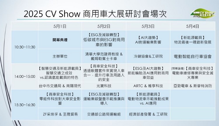 「2025 CV Show商用車大展」五月一日到四日在台中國際展覽館,不僅是商用車頭家年度最大的採購平台,更是一場不同於傳統車展的展會,要讓你看到不一樣的商用車大未來!「2025商用車大展」活動官網:https://cvshow.kje-events.com.tw