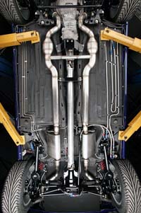 因應動力揚升,福特原廠也精心搭配了前、後懸吊幾何與設定,尤其八缸的龐大體積,將嚴重影響Focus配重與動態表現,因此更將驅動方式換到後輪,並換裝應付大馬力輸出的強化版五速手排、競技型離合器,車身再降低且更換十八吋鋁圈與跑車胎,這些都是為了配合高書出動力的改變。根據福特賽車技術部門總監Dan Davis表示,RS8不單提升動力也重新設定平衡性,力求在彎道與直線上,甚至甩尾跑道都可展現完美無缺的性能。
