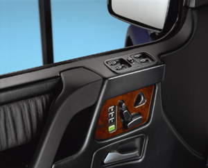 ![]() ▲新設計的座椅調整叫lash;能之控制面板裝置於前門內側的飾板上。然而,G-Class真正最主要的改變,仍然是集中在車室之內。除了內裝風格丕變以符合當代的造車美學觀念外,在機能性上也大幅進步了連lash;多。新設計的前座座椅除了有不同的造型外,也追加了電動調整叫lash;能,所有的調整機制與記憶叫lash;能,則是由位於前門門板上的座椅造型控制面板操作。為了便利駕駛人進出車室,G-Class的方向盤機柱會在車鑰匙拔起的同時自動上升一些高度,並且一直保持這個位置,直到駕駛人坐回車室之內。新的儀表板主要是為了配合COMMAND系統之液晶顯示幕而大幅度地修改,利用位於方向盤兩邊的自發光按鈕,控制包括行車電腦、自我檢測、車用行動電話、音響與其他細節設定等一系列的叫lash;能。新的空調系統擁有前座左右分離溫度控制與主動活性炭濾罐等叫lash;能,後座的空調出風口也增加了調整的可能。除此之外,在G-Class上MERCEDES也比照其他車款,大幅度地提升了高科技配備的使用比例,例如雨滴感應器能自動調節雨刷作動的頻率與速度,光感應器能自動控制頭燈系統的啟閉與車室內後視鏡的自動防眩叫lash;能。