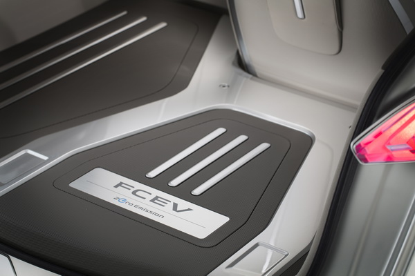 車是內裝則是以鮮明的包覆感為設計特徵,將櫸木材質的車門飾板與上色的壓克力材質相結合,醞釀出柔和的氛圍,再搭配金屬材質形成對比感。駕駛座前方以平板電腦螢幕作為儀錶板,整合顯示行車資訊及影音娛樂、導航、通訊等各項資訊,最有趣的是它本身就具有「免持鑰匙」的功能,將它插入固定位置才能將車輛發動。