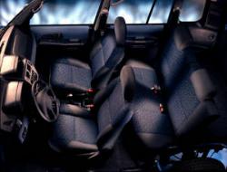 相對於三門型3735×1695×1695mm的車身長、寬、高,Pajero Pinin 5D的車長增加了30cm的水準而成為4035×1695×1700mm,軸距也由2280增加為2450mm。由於車體的加大,5D車型當然能提供較3D車型更充裕的車室空間,其車內的座位設計更從原本的四人座改進為標準的五人座型式,後排座椅擁有椅背傾斜調整的叫lash;能,以及分離傾倒的作用,在後排座椅完全倒下的狀態下,Pajero Pinin能夠達到最大的載物狀態,容納下1.2m長、578公升大小的行李。除了車尾的置物區域外,還有連lash;多零散但是便利使用的置物空間散佈在Pajero Pinin全車之內,其中由於車長的增加,5D車型的行李區底板下之隱藏式置物盒較短軸車型加長連lash;多,容量也更大。