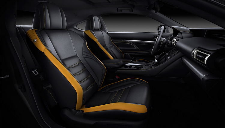 內裝也在LEXUS慣有的高質感與乘坐舒適性之外更強化跑車風格,各個控鍵與新式樣儀錶也是相當謹慎而精確地配置以提升駕駛樂趣。電熱控制與音響系統控制介面面板加入刷紋處理。中央鞍座兩側的膝蓋靠墊面積加大位置也加高,提高駕駛與乘客在激烈操駕時更好的膝蓋支撐。中央扶手修改了造型並加入縫線,在實用與裝飾方面都有提升。RC F Sport則提供了更多飾板與內裝色調的選擇。