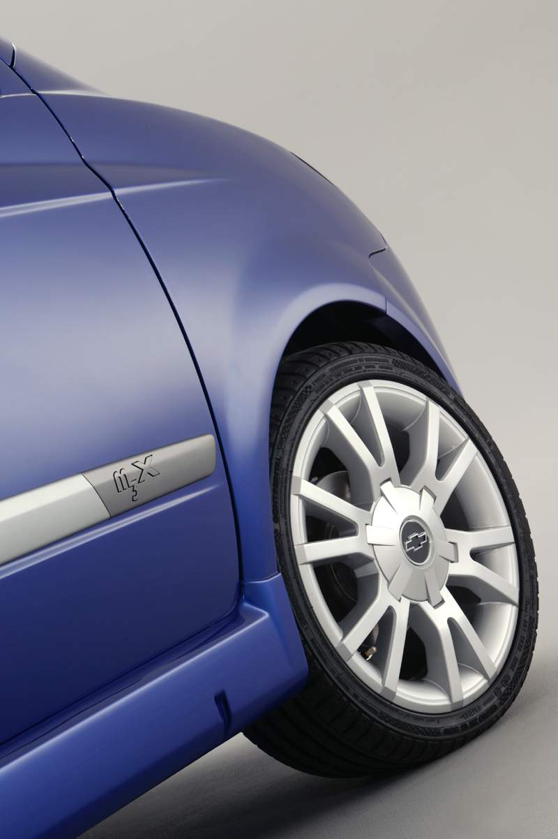■M3X![]() 最近有國內媒體報導王永慶有意收掉台朔汽車的消息,不知是否讓買Matiz的車主們捏了一把冷汗,但是對於CHEVROLET來說,將於明年春季在歐洲進行大改款的Matiz也是他們接替DAEWOO主導通用在歐洲市場經營後很看重的迷你車。這部M3X號稱是新一代Matiz的「預覽」show car,在外觀上與國產版本相比要精悍有型許多,頭燈組不僅造型特別,還採用了LED的照明方式,車頭引擎蓋與水箱罩、氣壩也完全撇去原來偏重可愛的圓潤簡潔,而將一些中型房車上常見的設計手法運用過來;還有環景式天窗、車頂後尾翼、車尾中央的雙出式排氣管與16吋跑車式鋁圈,讓人不禁開始懷疑這究竟真的會成為新一代車型還是只是車廠自己拿來狂改「玩爽」的改裝車。