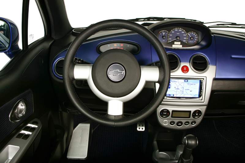 ■Kalos三門款![]() Kalos這部掀背小車於二年前導入歐洲市場後就成為GM DAEWOO與CHEVROLET二品牌在西歐與中/東歐)地區最重要的產品,其銷售量佔車廠在歐洲地區總銷售量的42%。CHEVROLET要深耕歐洲市場,當然不能忽略這個主力車系,以巴黎車展作為新追加的三門車款之發表舞台。與許多掀背車一樣,三門Kalos(車身長寬高:3880/1670/1495mm)在內外裝上都比五門車款更具動感,外裝上有修改過的前保桿與側裙等空力件的修飾,車室內換上黑/灰雙色調內裝,並增加了幾個置物收納空間。三門Kalos共提供三種引擎選擇,包括了一具72匹馬力的1.2升引擎與二具馬力分別為83匹與94匹的1.4升引擎。原廠公布之0~100km/h加速成績11.1秒,極速則可達到176km/h。