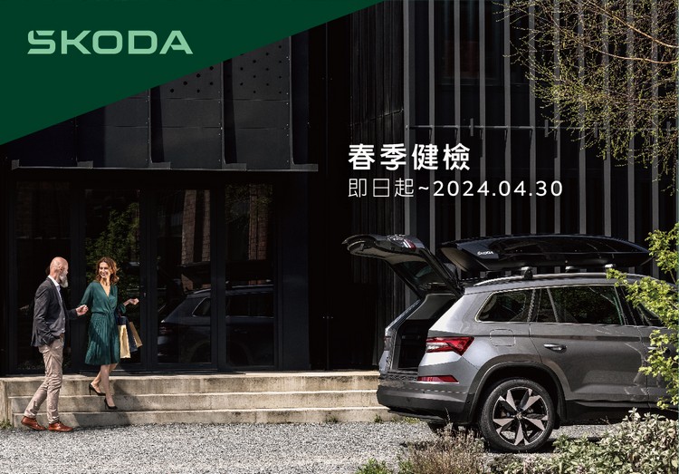 Škoda自即日起至2024年04月30日止推出 Škoda春季健檢活動,不僅提供六大類28項免費安全檢查,指定零件與輪胎更享有多種優惠。讓 Škoda 車主回廠參加活動體驗原廠完善的保養服務外,還可享有多種優惠。