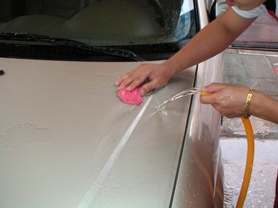 ▲能用大量清水配合操作當然是最好。魔術黏土的使用方法也非常簡單,在執行完上述的程序之後,保持車身濕潤並把魔術黏土捏平並且沾水,以水作為潤滑劑,輕輕慢慢的將車漆所沾附的所有粒子除去,事後再將全車擦乾,車漆表面清潔工作於焉完成,可以上臘了!而關於魔術黏土的選擇,市面上精品店多有販售,品牌眾多且水準參差不齊,筆者用過最好用的當屬日本JOYBOND(即潔朋)出品的魔術黏土,分為紅色及藍色兩種,紅色去污力較強適合專業的汽車美容用或是淺色車專用,藍色去污力較弱DIY用較為合適,此品雖然售價較為昂貴,但相對份量也較多,180g的包裝是市面上其他品牌的兩倍有餘,若是加上其他附加價值如黏土無殘斑沾漆、去污力強、較不刮漆等優點,JOYBOND黏土相較之下就值得筆者甘冒廣告之嫌大力推薦了!
