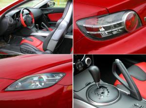 沒見過有哪部車在車上能見到那麼多屬於象徵性的圖形徽飾,早在幾年以前,甚至連RX-7都沒這麼直接將轉子形狀融合在車身或零件的造型上,但是RX-8做到了,讓人很清楚地一眼就能看出這就是象徵MAZDA性能家族的精神指標。
