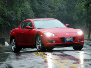 RX-8採用前鋁合金雙A臂與後多連桿懸吊系統,不僅前中置引擎將重心後移使前後配重達完美的50:50,車身也大量採用輕量化材質,使RX-8具有非常卓越的操控水準。少了渦輪增壓並不減少轉子引擎運轉的魅力,RX-8在這顆RENESIS轉子引擎上做了部份修改,讓這顆自然進氣的轉子能在低轉速區域保住良好推力,因此這顆引擎的進氣道由原本位置移到了側部,於是進氣道獲得可增加出來的30%空間,這麼一來,低速推力就足夠了(有關新一代轉子引擎的科技,本期汽車科技單元中有業界中最最深入的報導,請讀者千萬別錯過)。