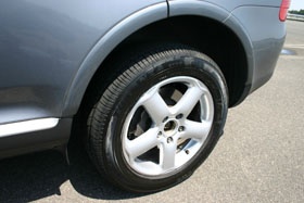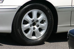 ▲注意看,右前輪的RFT輪胎已經完全洩氣,看起來和標準輪胎沒什麼明顯差距。 |