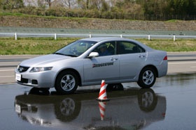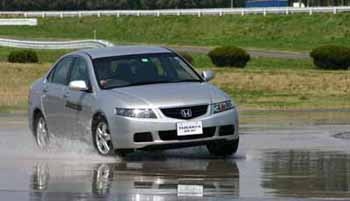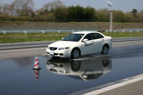 Pad可以測試出側向最大抓地力,不過在濕滑路面上的測試主要是考驗車輛的動態平衡,拿來測試輪胎也是個好方法。 |