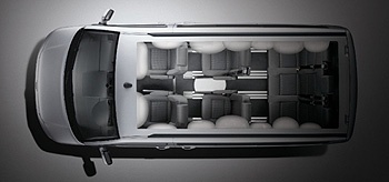 福斯Multivan全車配備8個環艙式安全氣囊,而且爆開瞬間的速度是千分之一秒,讓意外發生關鍵瞬間所有乘員受到全方位且最即時的保護。此外,當安全氣囊開啟時,主動式安全頭枕避免因頭部過度搖擺而造成頸椎部位的致命傷害,氣囊感知器亦將同時切斷燃油供應,大幅減低意外著火的風險。